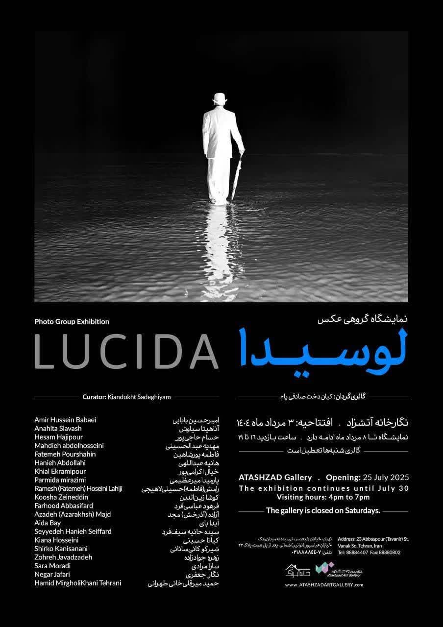 در «لوسیدا»، آثار ۲۰ عکاس جوان و خلاق به نمایش گذاشته شده که نگاههای متنوع و مستقلی را در کنار هم شکل دادهاند: