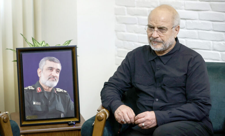 به گزارش جمهور آنلاین، محمدباقر قالیباف رئیس مجلس شورای اسلامی شامگاه پنجشنبه با حضور در منزل سردار شهید امیرعلی حاجی زاده فرمانده شهید نیروی هوافضای سپاه پاسداران انقلاب اسلامی که در جریان حمله رژیم صهیونیستی به محل کارش به همراه جمعی از همکارانش به شهادت رسید، با همسر و فرزندان و جمعی از بستگان این شهید دیدار کرد.